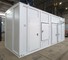 Контейнеры выполнены на прочном сварном каркасе с утеплением негорючими материалами и обшивкой из сэндвич-панелей, окрашены в фирменный цвет заказчика. Конструкция предусматривает удобный доступ к оборудованию за счёт распашных дверей и съёмной торцевой стены, что значительно упрощает обслуживание.